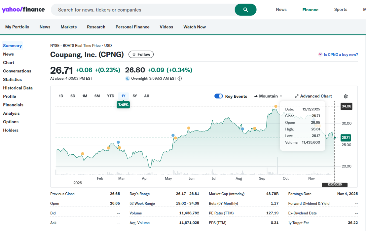 ├── 쿠팡: 126,650원 ($86.78)